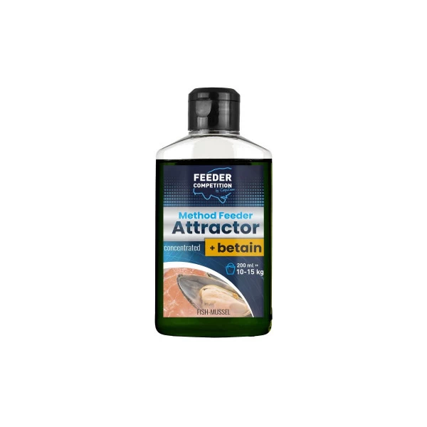 De Method Feeder Attractor met Betaine is een liquid die natuurlijke aminozuren en suikers bevat met een goede hoeveelheid betaine. Deze combinatie zorgt voor het attractieve lokeffect. Ideaal voor gebruik door het lokvoer of op het haakaas.