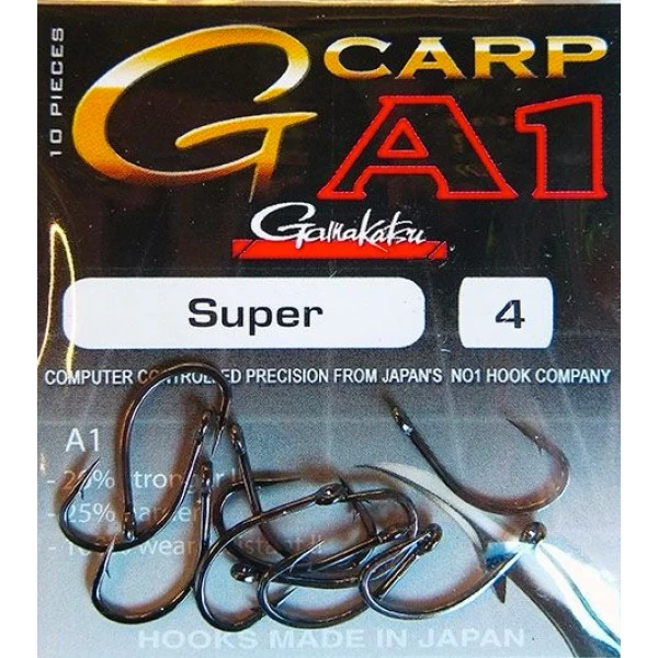 De Gamakatsu A1 Super Hook is hét paradepaardje van Gamakatsu. Zijn naam doet ook niets anders vermoeden: al heel wat jaren zweert een groot deel van karpervissend Europa bij deze ‘super’ haken! De Super Hook valt onder het A1 segment van Gamakatsu. Dit betekent dat de haken in hun vorm geperst zijn. Dat maakt ze niet alleen 20% harder en 25% sterker, maar ook is de punt ongekend scherp. De haken hebben allen eerder een platte vorm dan een ronde. Tijdens uitgebreid onderzoek is gebleken dat deze ‘flat forged’ vorm vele male sterker is dan de ouderwetse ronde vorm. De haak heeft een rechte haaksteel met een licht naar binnen gebogen haakpunt. De bocht is wijd gehouden zodat deze zich zeer gemakkelijk verankert. De Gamakatsu A1 haken worden in Japan onder een streng toeziend oog geproduceerd en het blijven dan ook zeer unieke haken op de hengelsport markt!