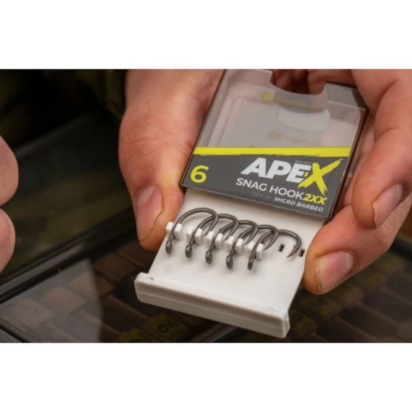 Door de combinatie van vele jaren productie- en hengelervaring, is het assortiment Ape-X-haken ontworpen voor elke vissituatie op karper en andere grote witvis. Onze ultramoderne productieprocessen zijn uitgebreid getest gedurende meer dan twee jaar en maken gebruik van de meest geavanceerde haakpunttechnologie die beschikbaar is, waardoor Ridgemonkey een reeks haken heeft kunnen maken die ongeëvenaard zijn in sterkte, scherpte en botbestendigheid. Veel karpervissers zweren bij de Ape-X-haken, want ze laten je absoluut niet in de steek! Probeer het zelf.