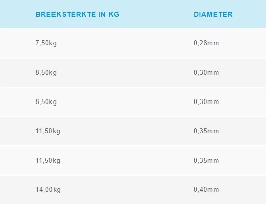 De volgende lijndiktes zijn leverbaar: 0,28mm, 0,30mm, 0,35mm of 0,40mm!
