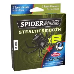 De SpiderWire Stealth Smooth 8 and Berkley FC Duo Spool is een unieke nieuwe gevlochten lijn én fluorocarbon duo-spoelconcept. Hiermee beschik je over een uitgebalanceerde combinatie van hoofdlijn en leader in één pakket! Je kunt de kleine spoel van het Berkley Vanish fluorocarbon leader-materiaal eenvoudig in de grotere spoel van de beproefde Stealth Smooth 8 gevlochten hoofdlijn bevestigen, wat geweldig is voor gemakkelijk transport. Op deze manier houdt je beide lijnen altijd bij elkaar! De combinaties zijn ideaal voor het roofvissen op bijvoorbeeld snoekbaars, baars, forel en zeebaars.