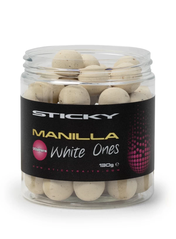De Sticky Baits Manilla White Ones Wafters zijn zoals de naam al doet vermoeden opvallende witte wafters die je een geweldig visueel voordeel bieden wanneer ze als een enkele of over grote bedden met aas worden gevist. Naast de fluorkleur hebben deze kleine schoonheden ook verhoogde aantrekkingsniveaus om ze echt te laten opvallen en extra pick-ups voor je te stelen. Ze zijn volledig naaldvriendelijk, zelfs in het kleinere formaat van 12mm, wat ideaal is voor subtiele presentaties zoals zigs of snowman. Het grotere haakaas van 16mm is meer geschikt voor Chod- of Hinge-rigs en voor de immer populaire Ronnie/Spinner-rig. De Fluor Wafters die zeer attractief zijn!