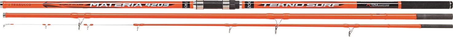 De Trabucco Materia Tekno Surf MN is een krachtige hengel voor de strandvisserij, welke vervaardigd is uit een uiterst betrouwbare CX-1 High Modulus Carbonblank. De ultra goede werpeigenschappen worden maximaal benut door het JTS-systeem voor dé perfecte uitlijning van de hengeldelen, waar de opvallend witte top dermate gevoelig is dat onder ruige omstandigheden nauwe aanbeten feilloos gedetecteerd worden. Geweldige keuze voor de avontuurlijke kustvisser die de meest woeste zeeën op haar knieën wil krijgen!